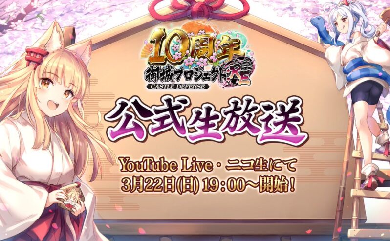 YouTube・ネット番組 【番組出演のお知らせ】3/22(日)19:00〜『御城プロジェクト:RE 10周年記念生放送!〜 第7回TD祭り拡大版SP〜』